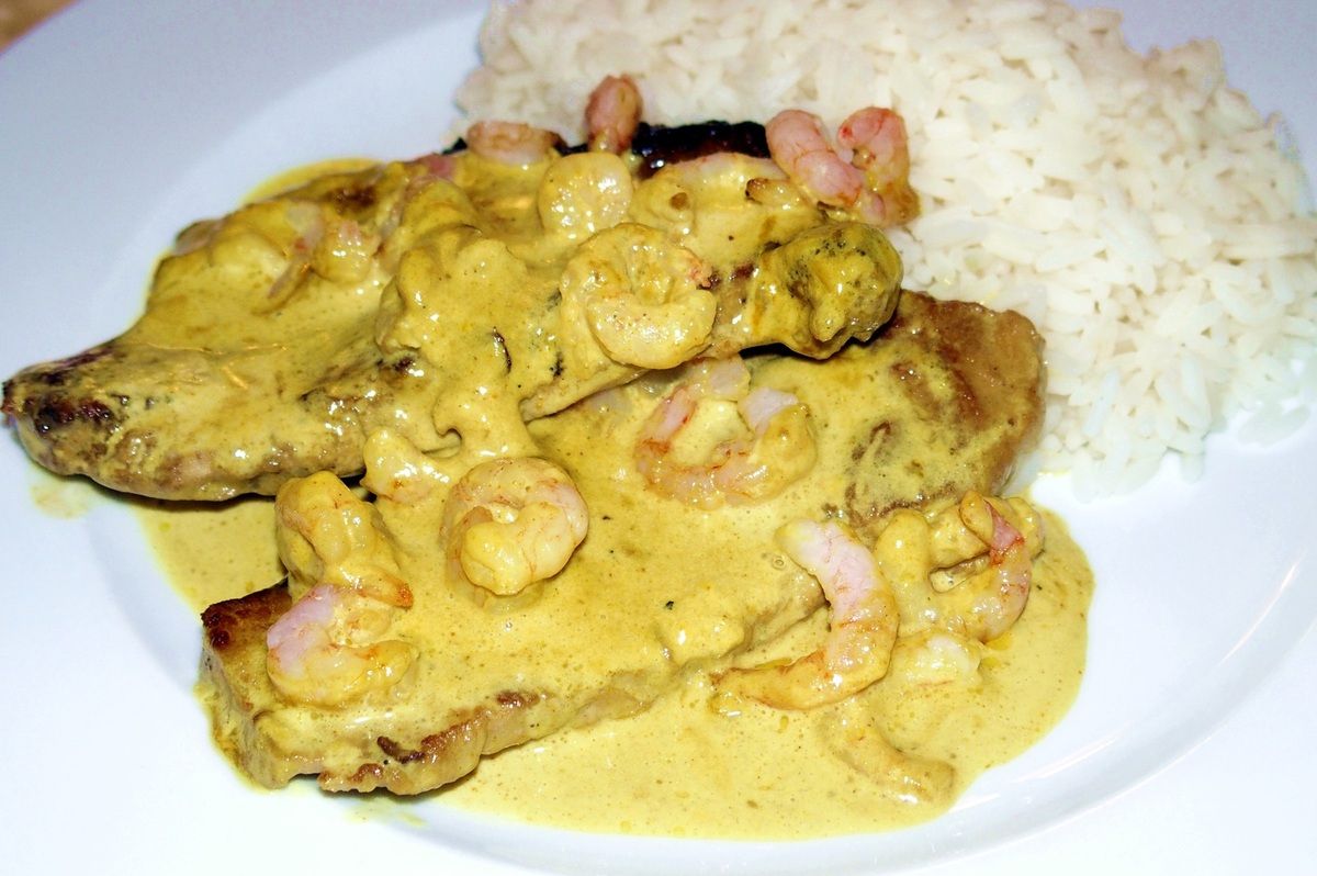 Je suis certaine que mes épicuriens francophones seront ravis de la découvrir. C'est bon, gourmand et simple. Les enfants adorent ça en principe. Alors n'hésitez pas. Crevettes, crème, curry, moutarde, cognac, que de bonnes choses...